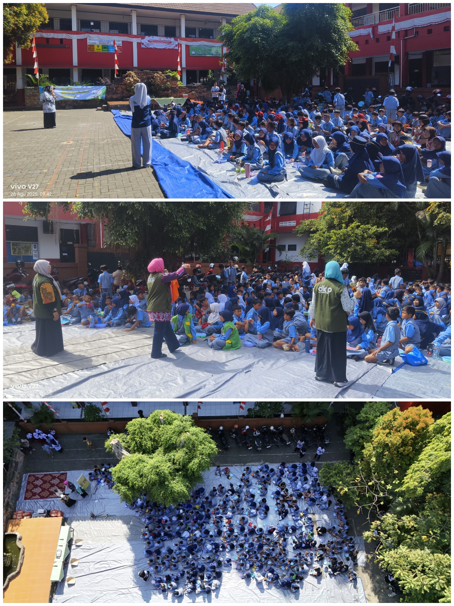 Acara semakin meriah ketika sejumlah siswa berani maju untuk menjawab pertanyaan tentang makna dan manfaat dari makanan yang mereka bawa. Anak-anak yang berhasil menjawab diberi hadiah, sementara teman-temannya bersorak gembira memberi dukungan. Suasana penuh semangat ini menunjukkan bahwa edukasi gizi bisa dilakukan dengan cara yang interaktif dan membangkitkan rasa percaya diri anak-anak.