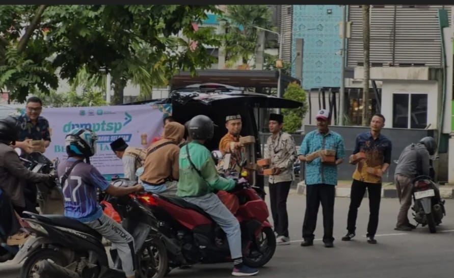 Deliksatu.com – Tangsel – Dinas Penanaman Modal dan Pelayanan Terpadu Satu Pintu (DPMPTSP) Kota Tangerang Selatan (Tangsel) membagikan ribuan paket takjil kepada masyarakat yang melintas, khususnya di kawasan Serpong, pada Kamis (12/3/2026).