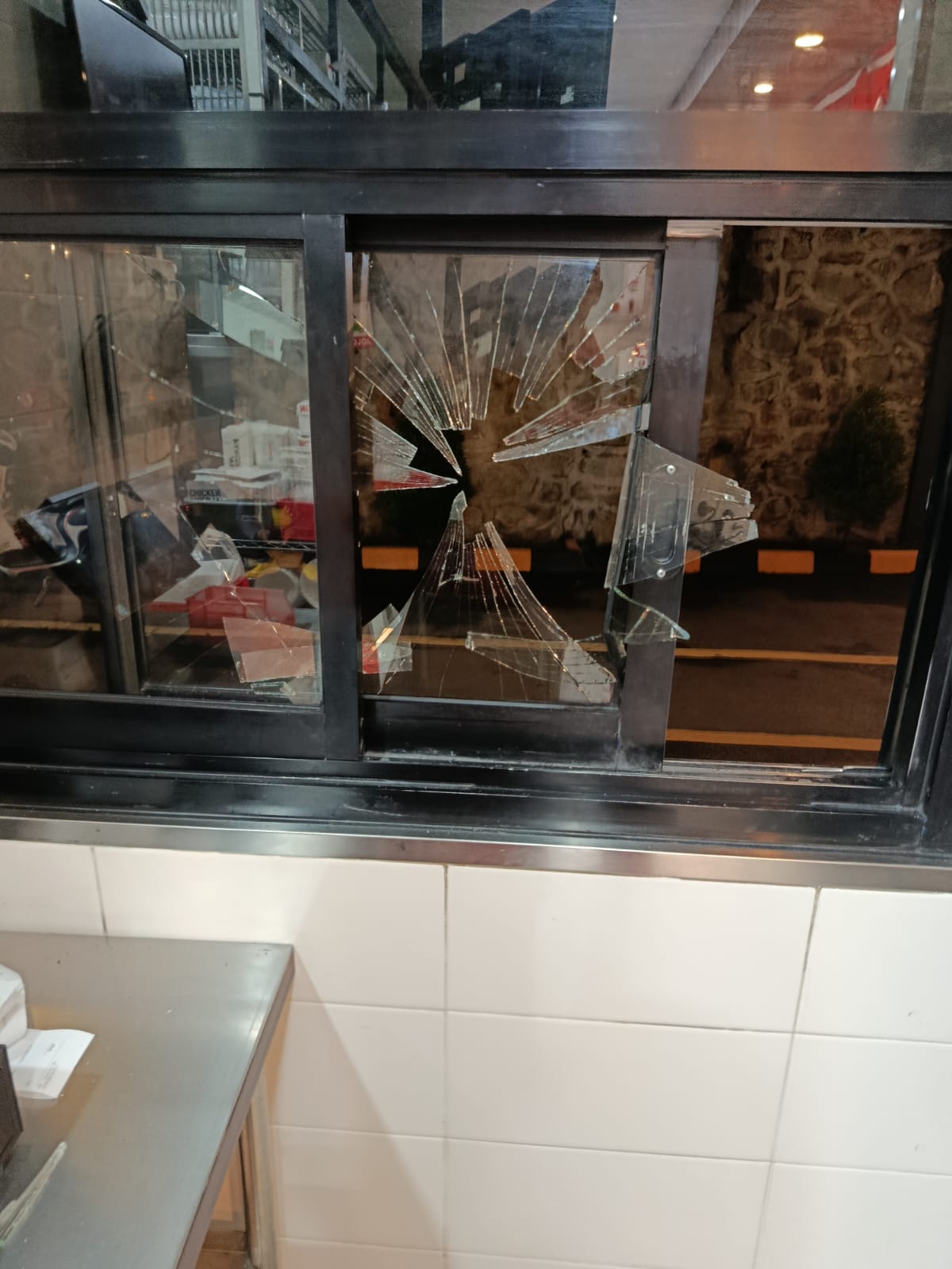 Pelaku sempat cekcok dengan shift leader, lalu diamankan security keluar gerai. Namun tak lama kemudian ia kembali lagi dan langsung memecahkan kaca jendela drive-thru dengan tangan kosong.