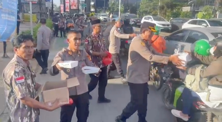 Mereka membagikan paket takjil kepada pengendara yang melintas sebagai bentuk kepedulian dan berbagi berkah Ramadan kepada masyarakat.