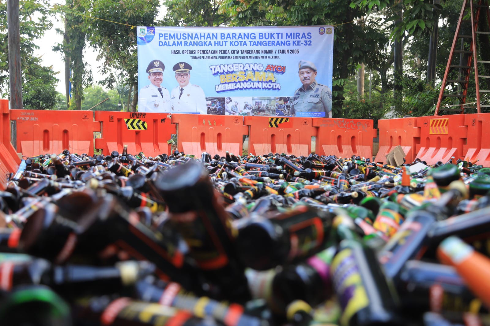 HUT Ke-32 Pemkota Tangerang Musnahkan Ribuan Botol Miras