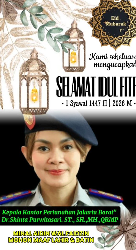 Kepala Kantor Pertanahan Jakbar Dr.Shinta Purwitasari. ST., SH.,MH.,QRMP Beserta Jajaran Ucapkan” Selamat Hari Raya Idul Fitri 1447H