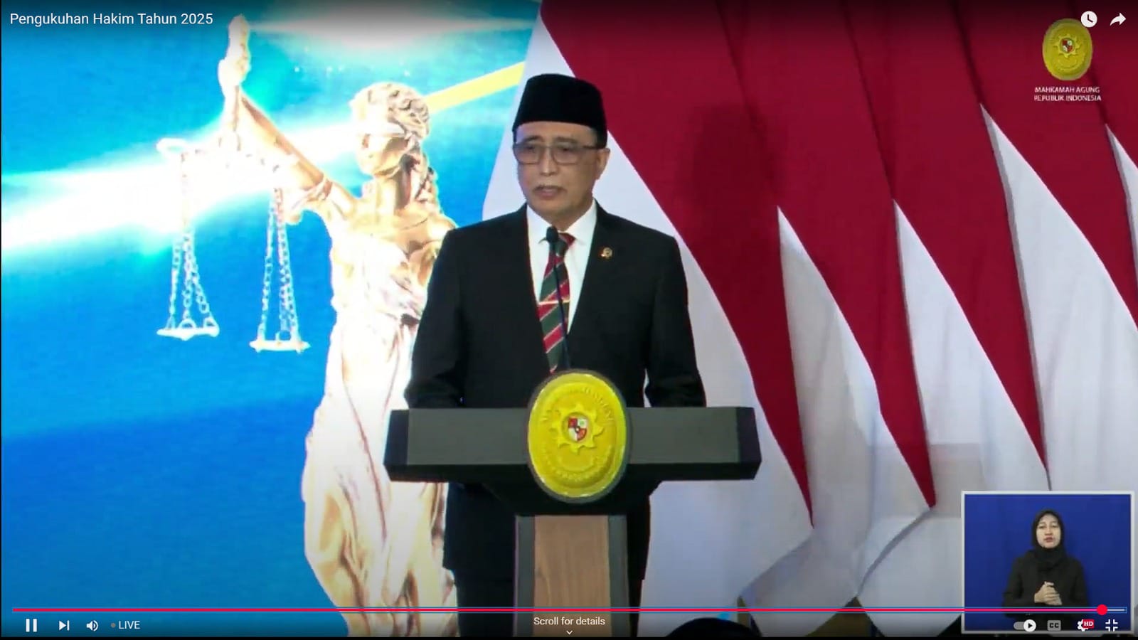 Hal itu disampaikan dalam pengukuhan hakim baru 2025 di Gedung MA, Jalan Medan Merdeka Utara, Gambir,Jakarta Pusat, Kamis (12/5/2025).