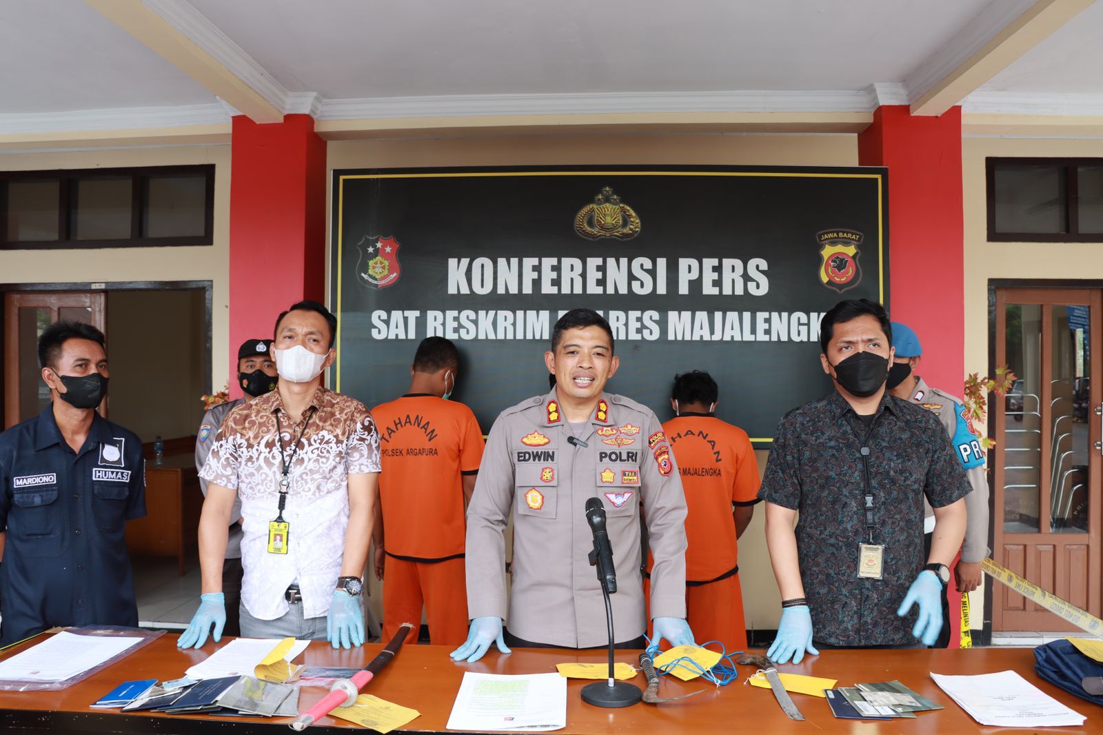 Ketiga Pelaku yang diketahui berinisial RS (19) Tahun yang merupakan warga Kecamatan Maja, Kabupaten Majalengka, YD (28) Tahun warga Kecamatan Cingambul, Kabupaten Majalengka, dan TT (44) Tahun merupakan warga Kecamatan Majalengka, Kabupaten Majalengka. Dan mereka juga merupakan Residivis, terang Kapolres Majalengka, AKBP Edwin Affandi.
