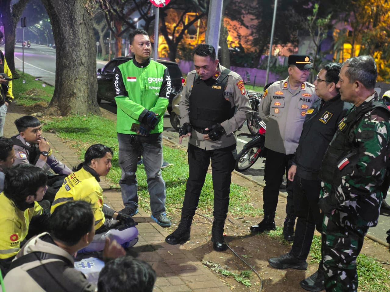 Petugas memberikan imbauan kamtibmas kepada masyarakat, terutama pengemudi ojek online, agar tidak mudah terprovokasi isu atau hoaks yang beredar di media sosial.