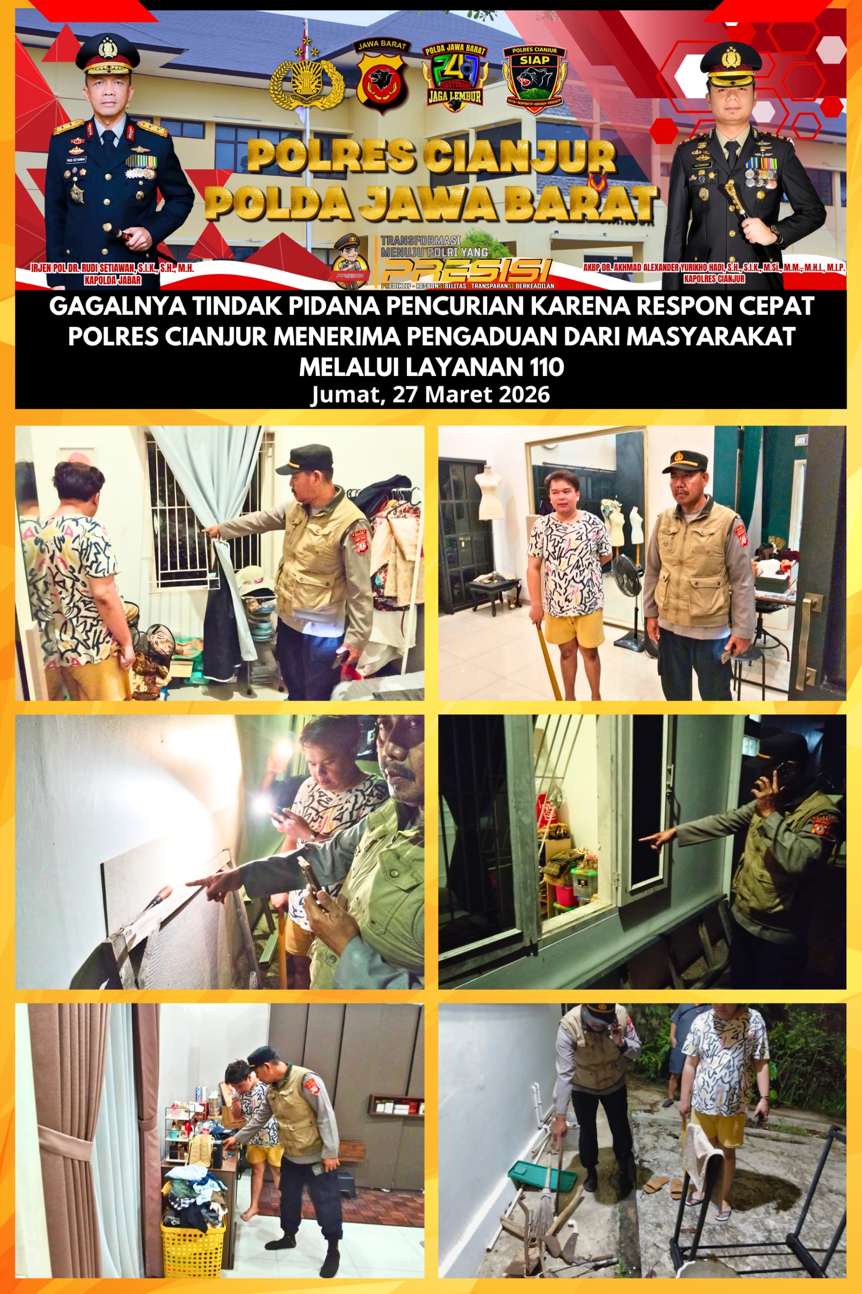Kapolres Cianjur menegaskan bahwa keberhasilan menggagalkan aksi pencurian tersebut tidak lepas dari peran aktif masyarakat yang cepat melapor melalui layanan 110, serta respon cepat petugas Pamapta Polres Cianjur.