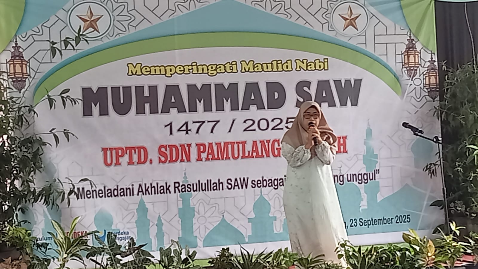 Deliksatu.com, Pamulang – Tangsel,  SDN Pamulang Tengah menggelar kegiatan Maulid Nabi Muhammad SAW. Adapun penampilan yang dipentaskan untuk tari pembuka yakni Tari Tarian Nusantara baca puisi  oleh kelas 6, Kelas 5 dan juga kelas 4, peserta yang tampil untuk mengisi Hadroh, marawis, tazkiroh maulid, zikir dan tahlil, Baca puisi tentang kisah nabi dari siswa siswi, dan tari shalawatan yang diikuti pesertanya dari kelas 1 s/d kelas 6. Kegiatan tersebut merupakan ekstra kurikuler di sekolah. Lokasi acara di lapangan sekolah SDN Pamulang Tengah, Selasa, 23/09/2025.