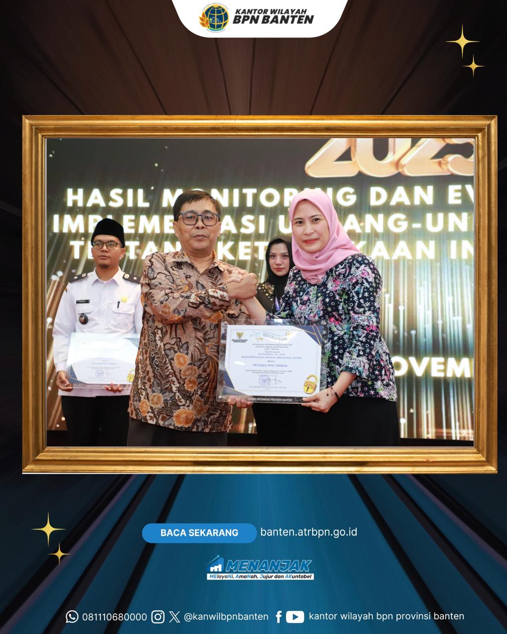Dalam kesempatan tersebut, Kanwil BPN Provinsi Banten berhasil meraih dua penghargaan sekaligus, yakni sebagai Badan Publik Informatif dan Petugas Pejabat Pengelola Informasi dan Dokumentasi (PPID) Terbaik.