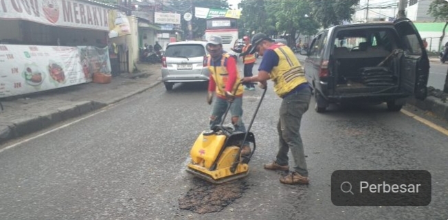 Polisi dan Dinas PU Tangsel Bergerak Cepat Perbaiki Lubang di Jalan H. Juanda Ciputat Tangsel
