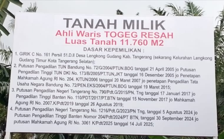 Putusan MA Inkrah, Ahli Waris Tegaskan Kepemilikan Lahan 11.760 m² di Serpong