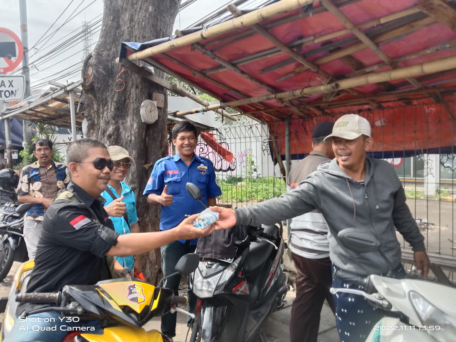 “Pada kesempatan kali ini, giat rutinitas Jum’at berkah kami berikan makanan siap saji kepada Masjid Al-Mukhlisin Cengkareng,petugas Kebersihan,pengendara Driver Ojek Online” ujar Wawan