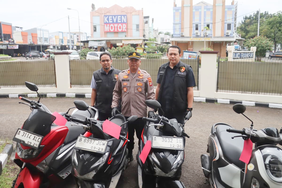 Polisi juga mengamankan sejumlah barang bukti, di antaranya empat unit sepeda motor, tiga kunci letter T beserta 10 mata kunci, tiga magnet motor kontak kunci, serta satu pucuk senjata api rakitan jenis revolver berikut empat butir peluru.