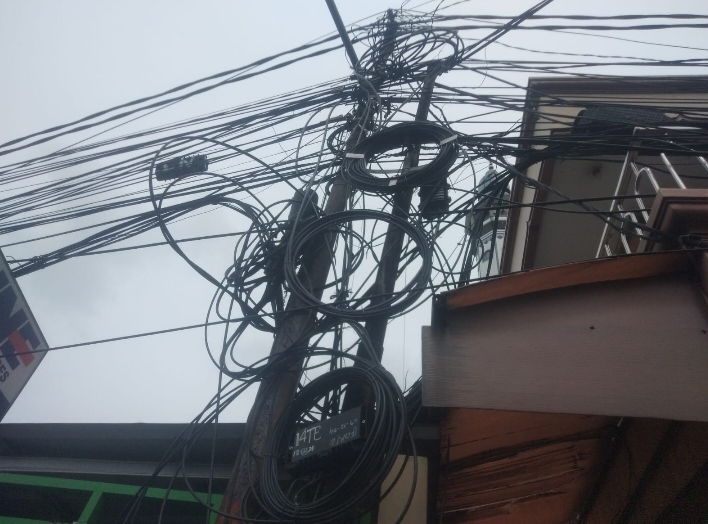 “Ya kita khawatir saja, kabel optik itu berantakan dan nempel di tiang listrik. Bukan tidak mungkin bisa berdampak kebakaran kalau dibiarkan,” ujar Han, warga RW 07 Semanan.