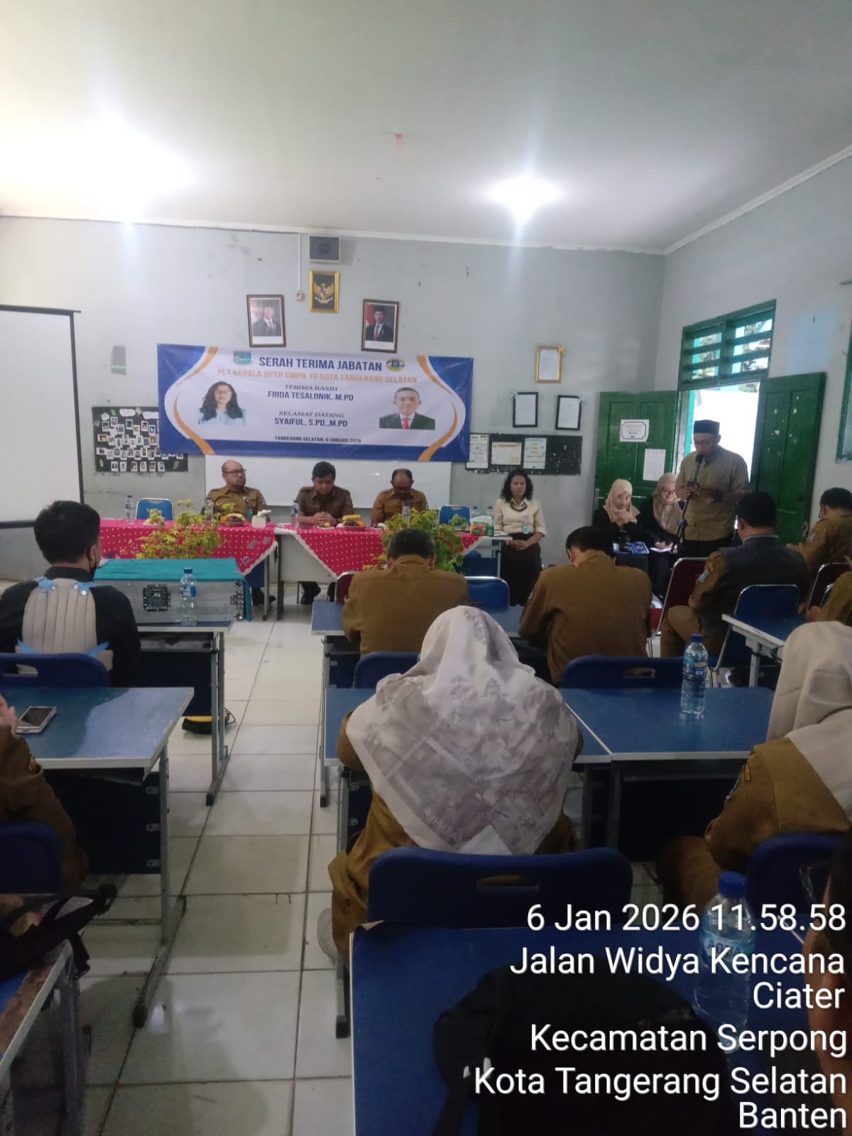 DELIKSATU.COM, TANGERANG SELATAN – Upacara Serah Terima Jabatan (Sertijab) Kepala Sekolah SMP Negeri 19 Tangerang Selatan (Tangsel) berlangsung khidmat di Aula SMPN 19 Tangsel, Selasa (6/1/2026). Kegiatan tersebut dihadiri langsung oleh Kepala Dinas Pendidikan dan Kebudayaan (Dindikbud) Kota Tangerang Selatan, Deden Deni, selaku Pembina UPTD.